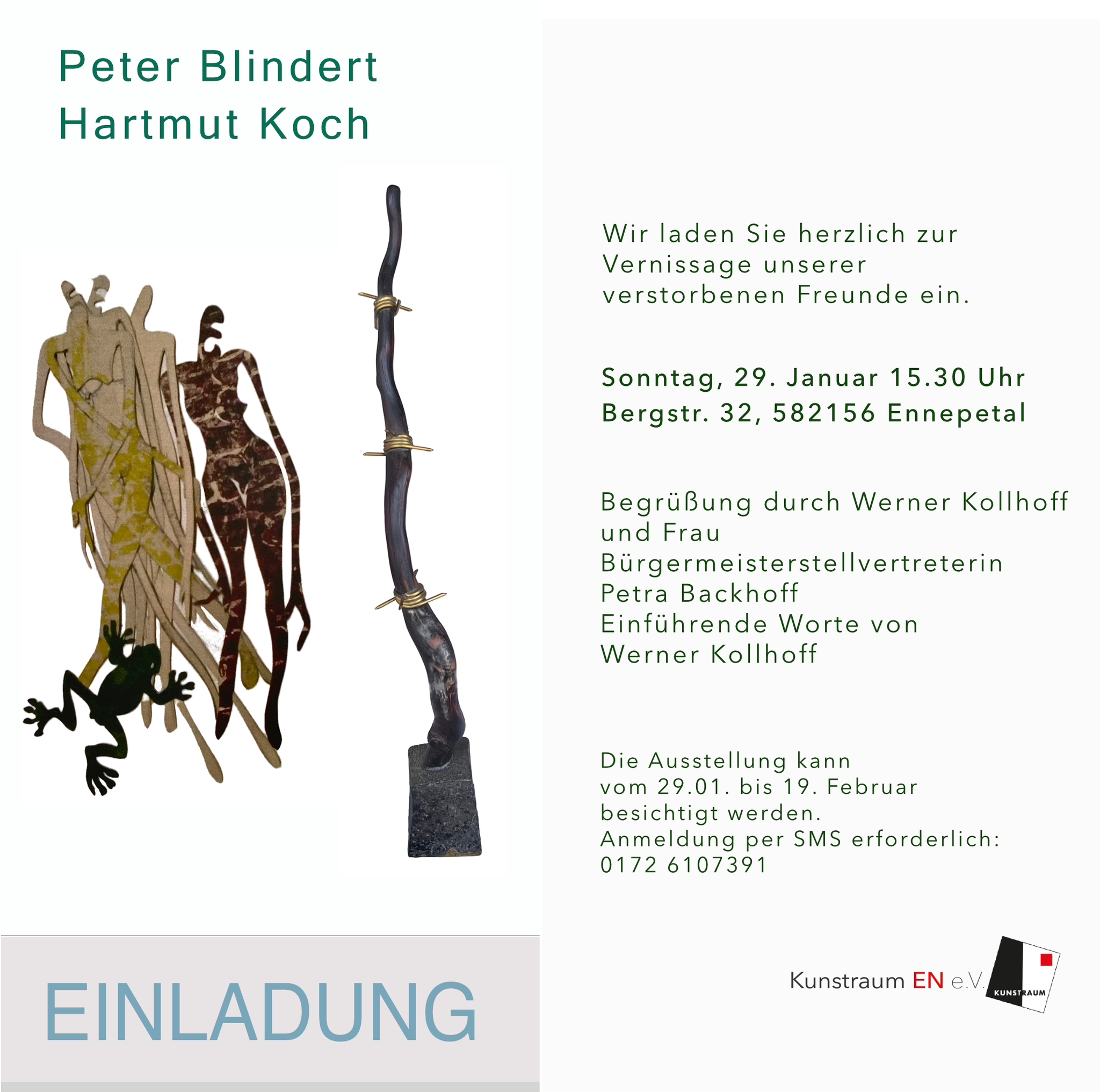 Am Sonntag, 29. Januar 2023 um 15:30 Uhr findet im Kunstraum EN die Vernissage zur Retrospektive „Peter Blindert / Hartmut Koch“ statt.